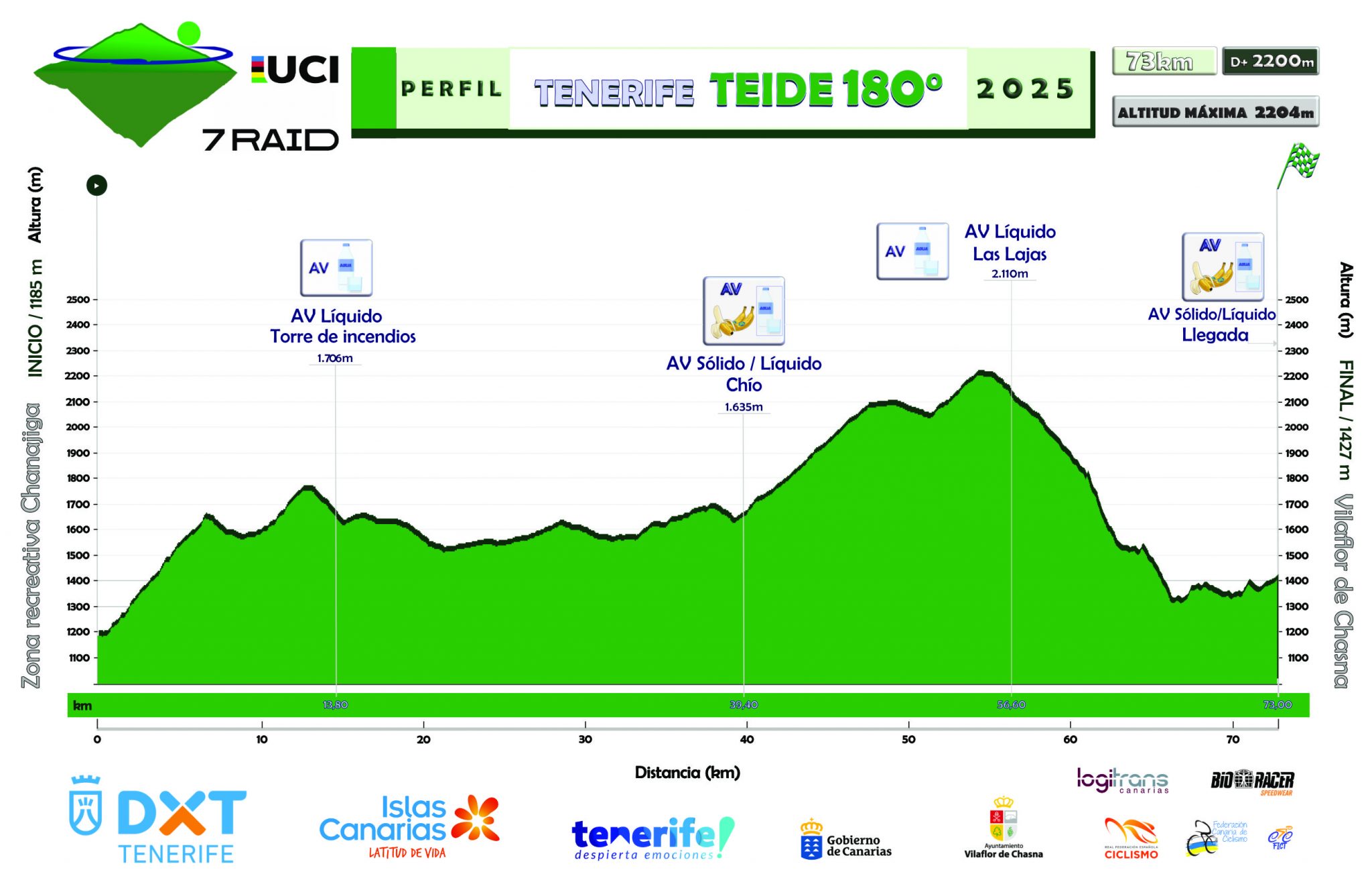 "Discurre principalmente por pistas de tierra en un estado aceptable, algún tramo de camino que se tiene que hacer obligatoriamente bajado de la bici y algún tramo de carretera asfaltada, que permitan dar la vuelta al Teide en bicicleta de montaña."